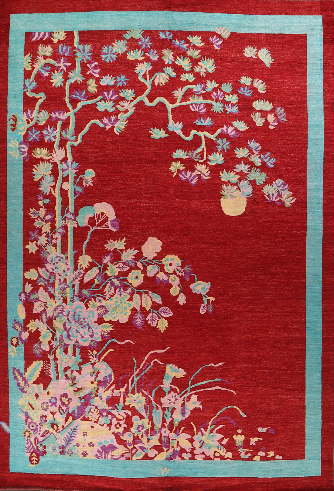 Vegetable Dye Red Abstract Handmade Area Rug 10x13