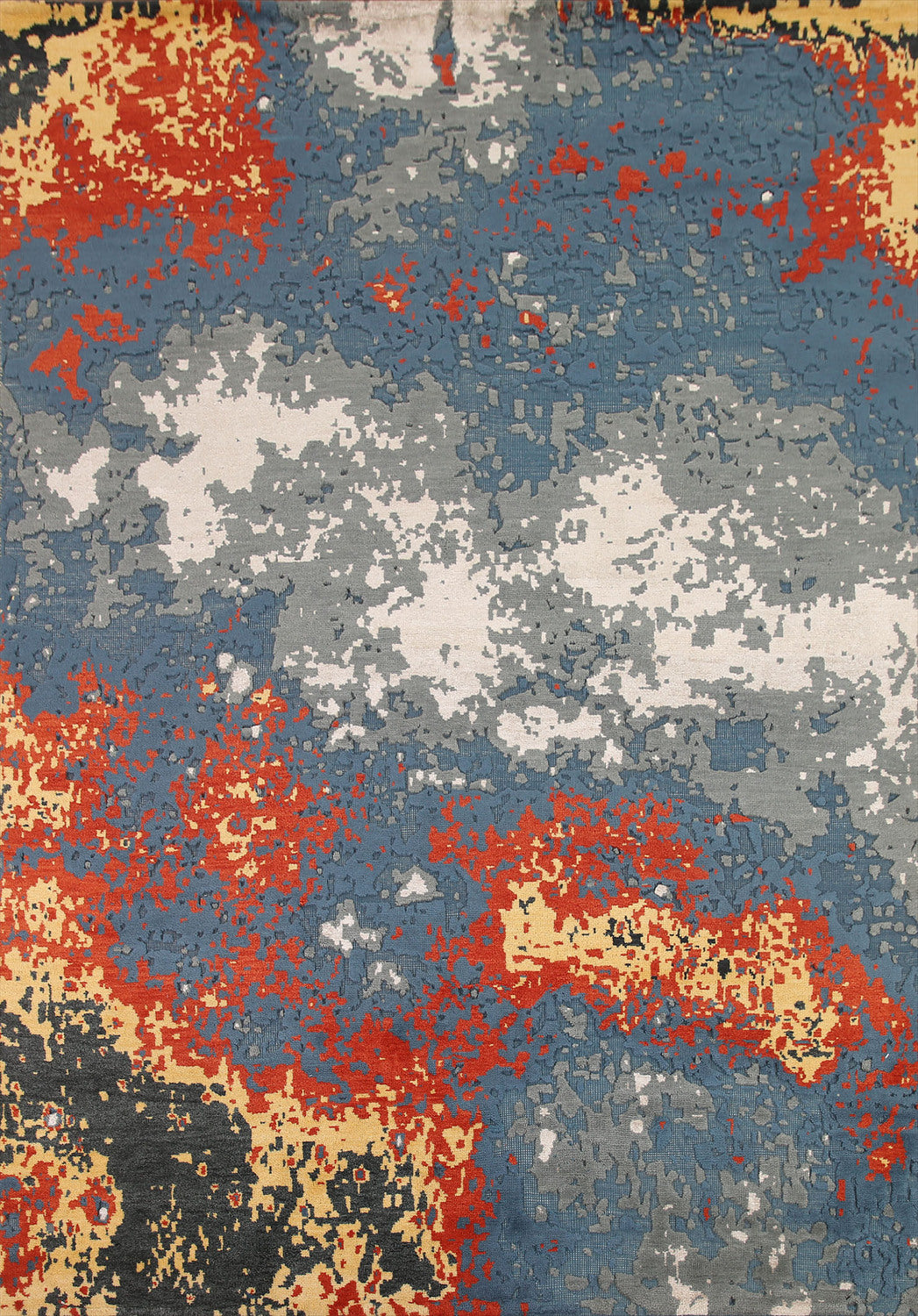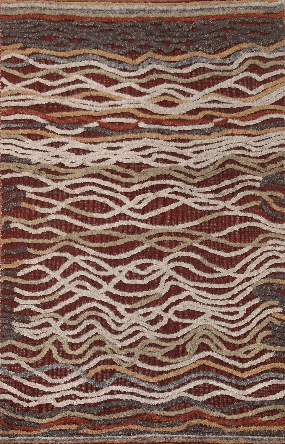 A Beautiful Genuine India Abstract rug is Hand Knotted by skillful weavers in India with...