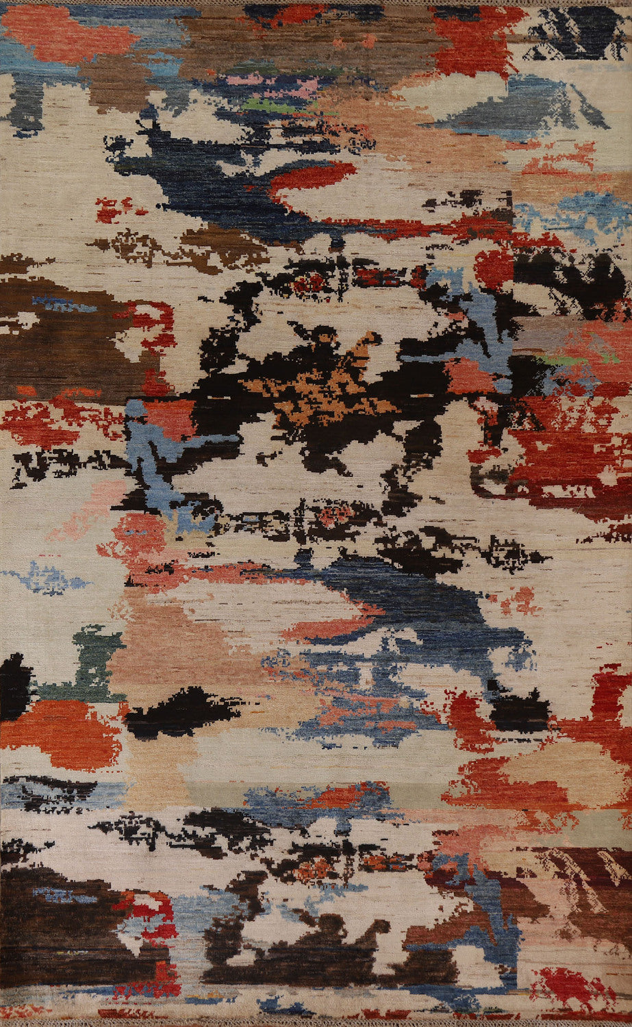 A Beautiful Genuine Pakistan Abstract rug is Hand Knotted by skillful weavers in Pakistan with...