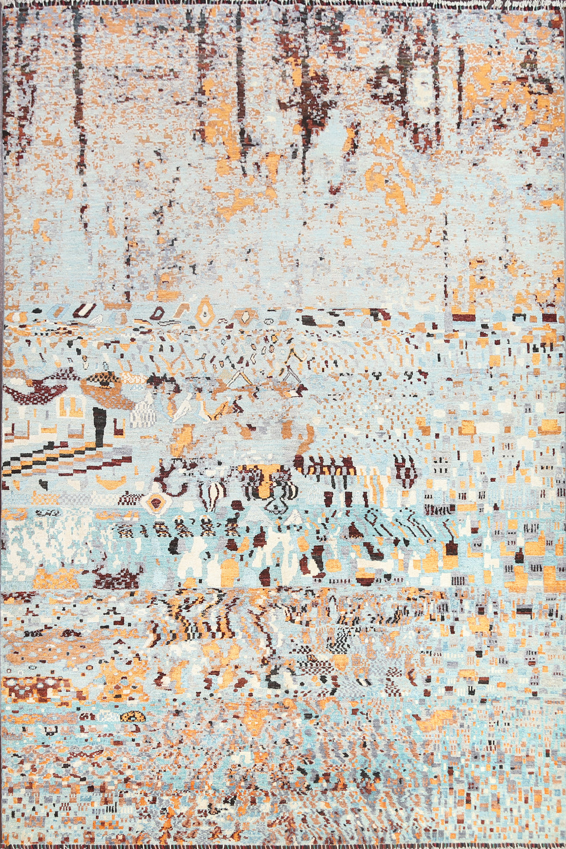 A Beautiful Genuine Pakistan Abstract rug is Hand Knotted by skillful weavers in Pakistan with...