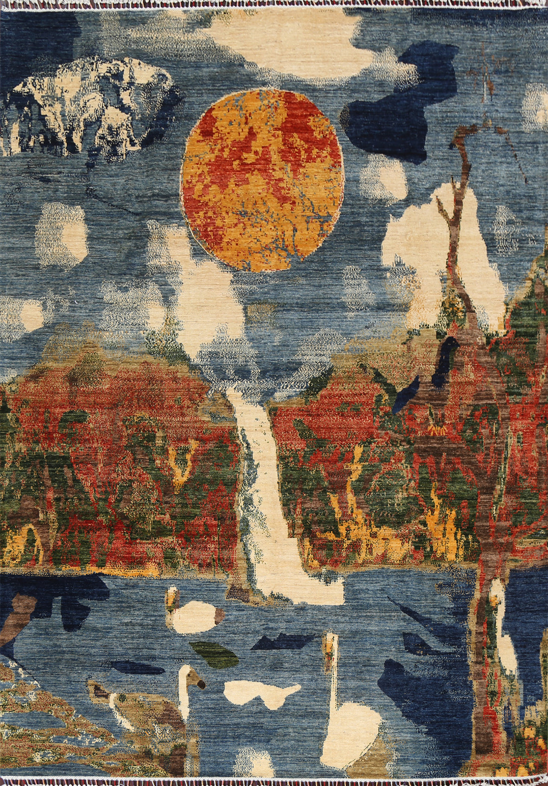 Vegetable Dye Abstract Wool Area Rug 4x6