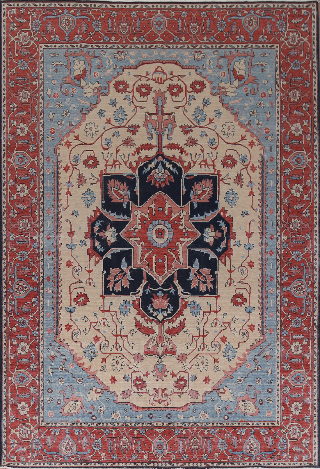 Hand-Knotted Wool Heriz Serapi Turkish Rug 9x12