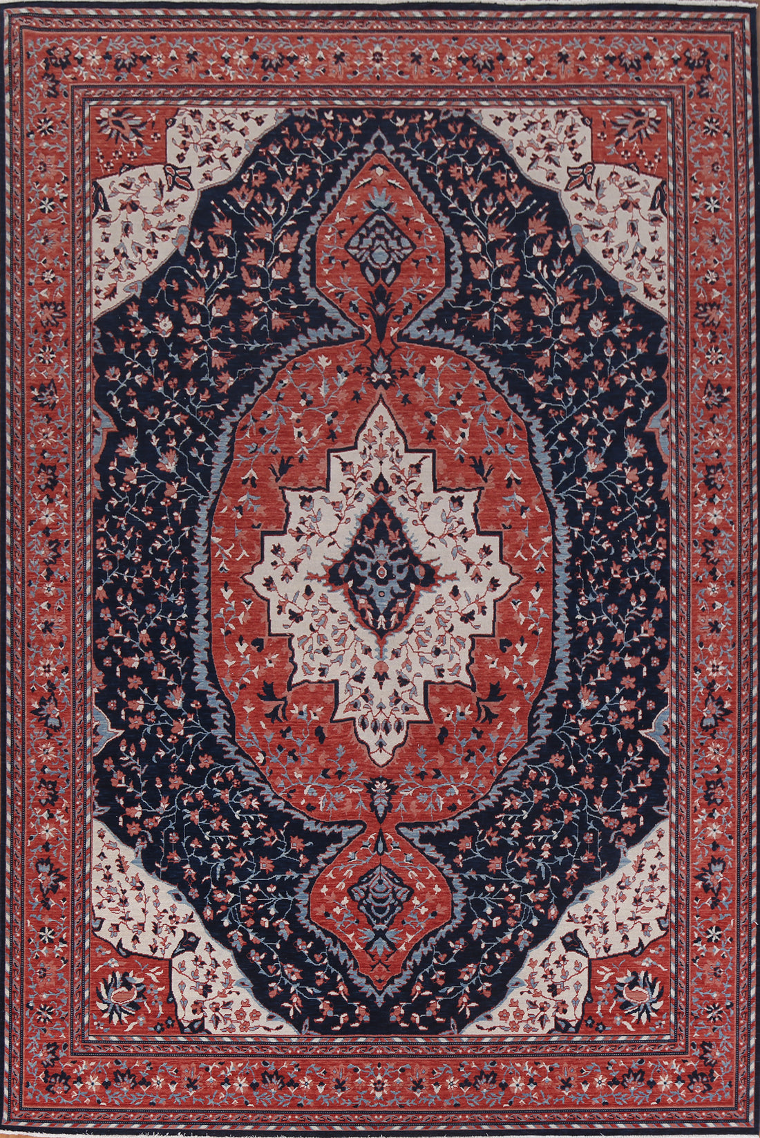 Navy Blue Floral Sarouk Farahan Turkish Rug 9x12
