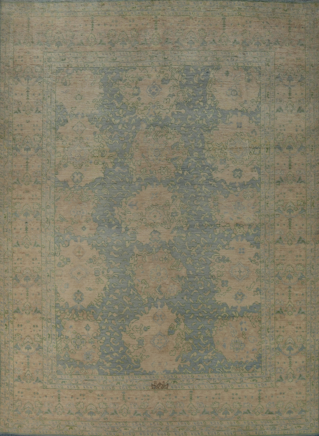 Vegetable Dye Blue Gray Oushak Turkish Area Rug 8x11