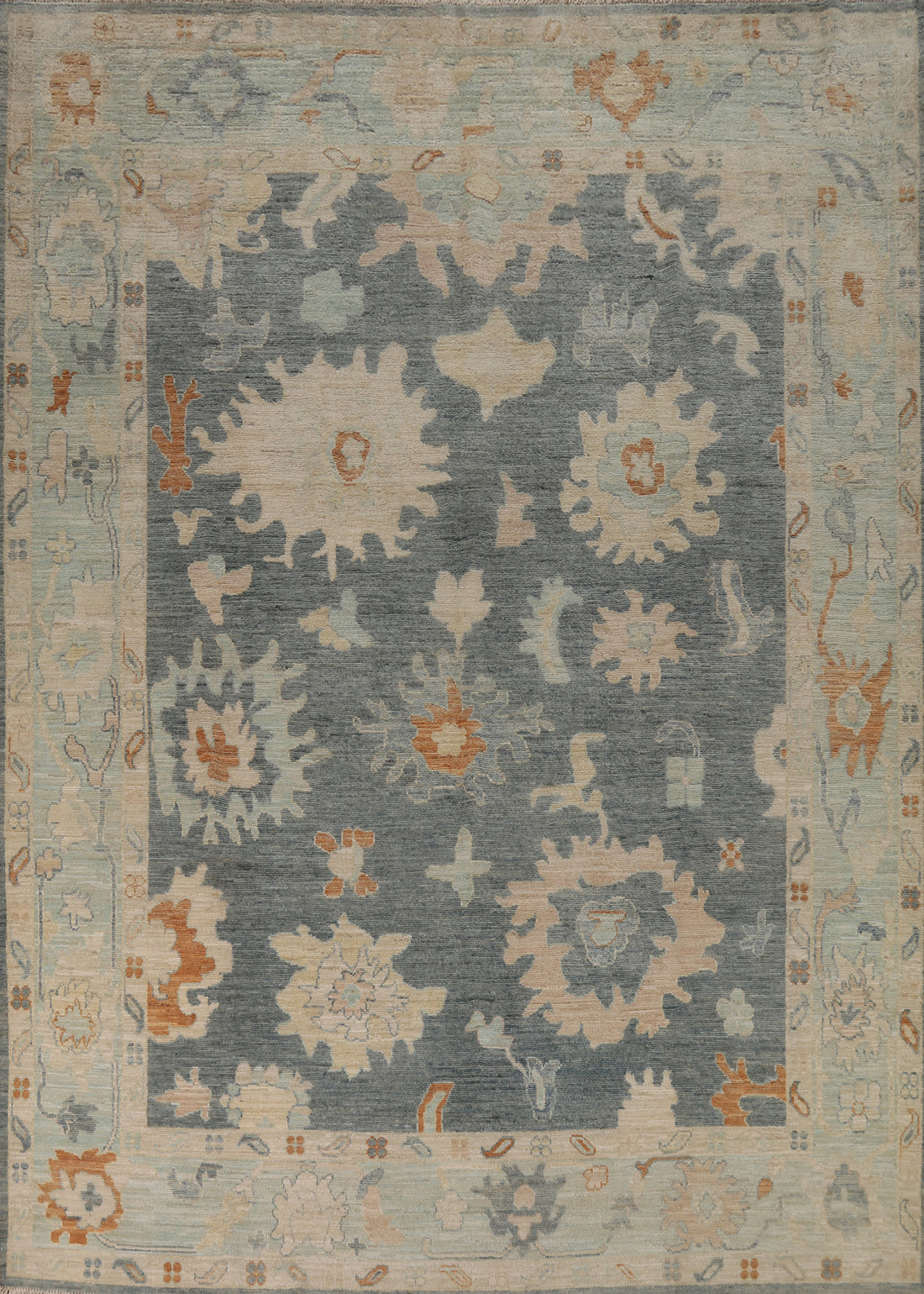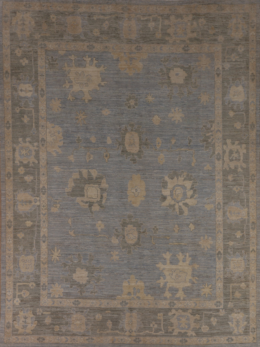 Vegetable Dye Gray Oushak Turkish Area Rug 9x13