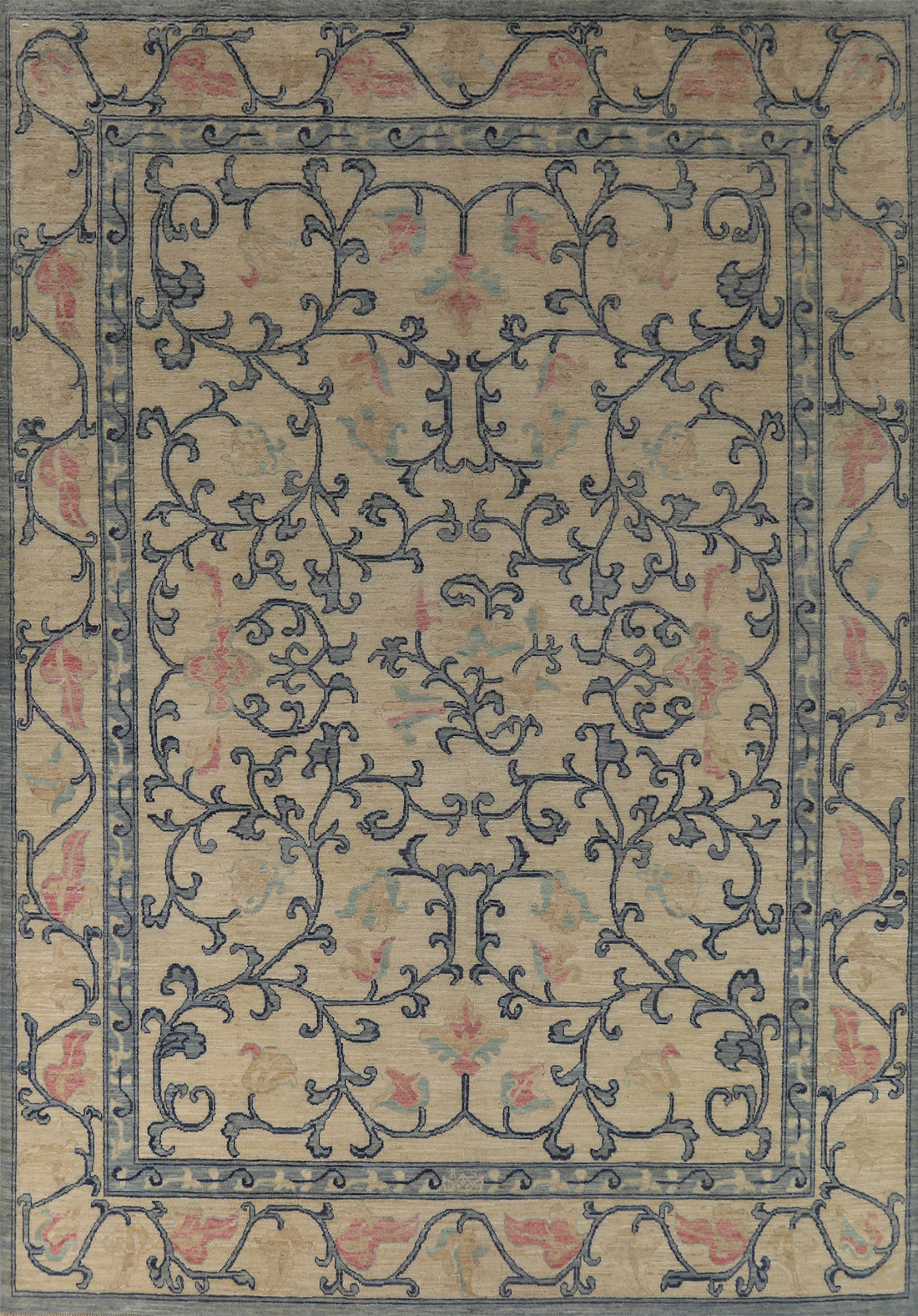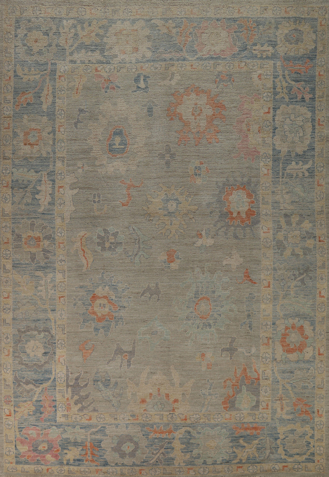 Vegetable Dye Floral Oushak Turkish Area Rug 10x12