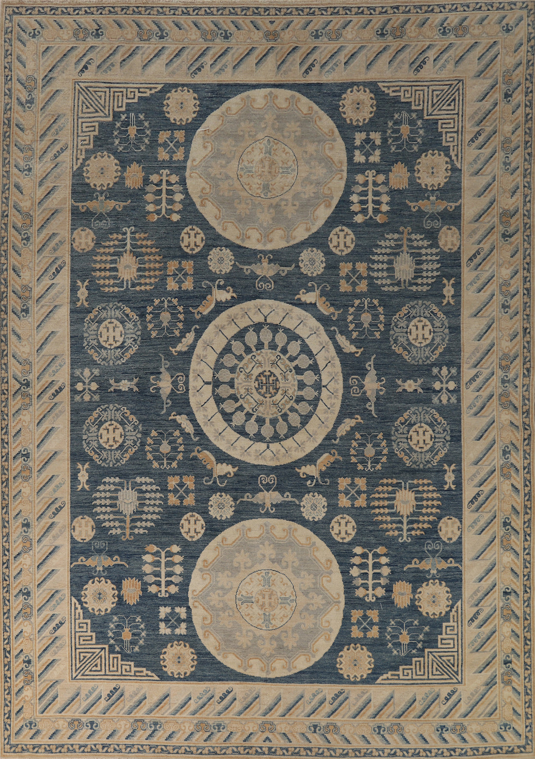 Vegetable Dye Blue Oushak Turkish Area Rug 9x12