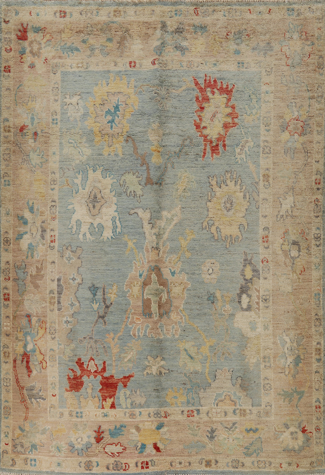 Vegetable Dye Floral Oushak Turkish Area Rug 5x8