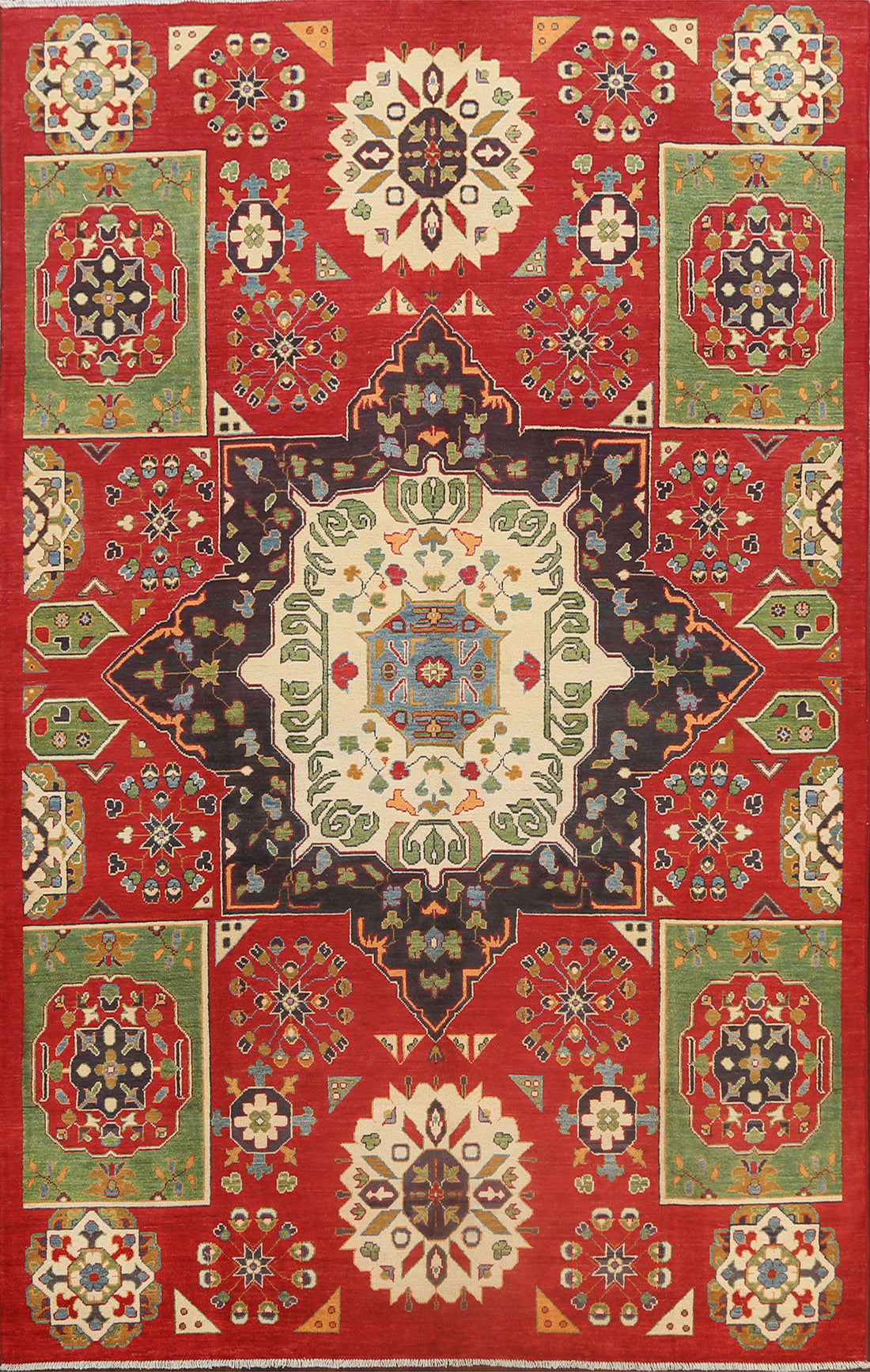 A Beautiful Genuine Pakistan Kazak rug is Hand Knotted by skillful weavers in Pakistan with...