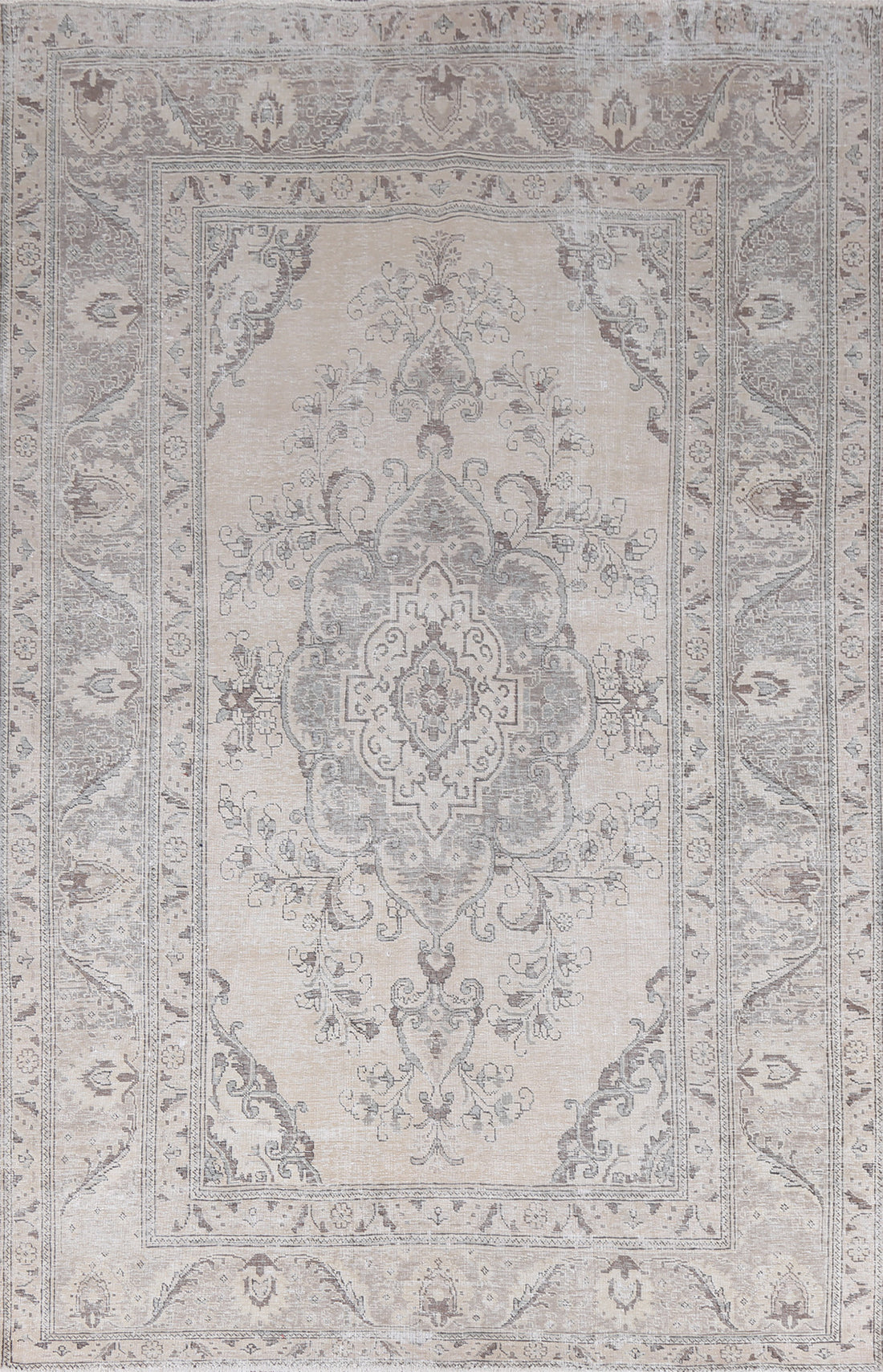 Distressed Floral Tabriz Persian Area Rug 7x10