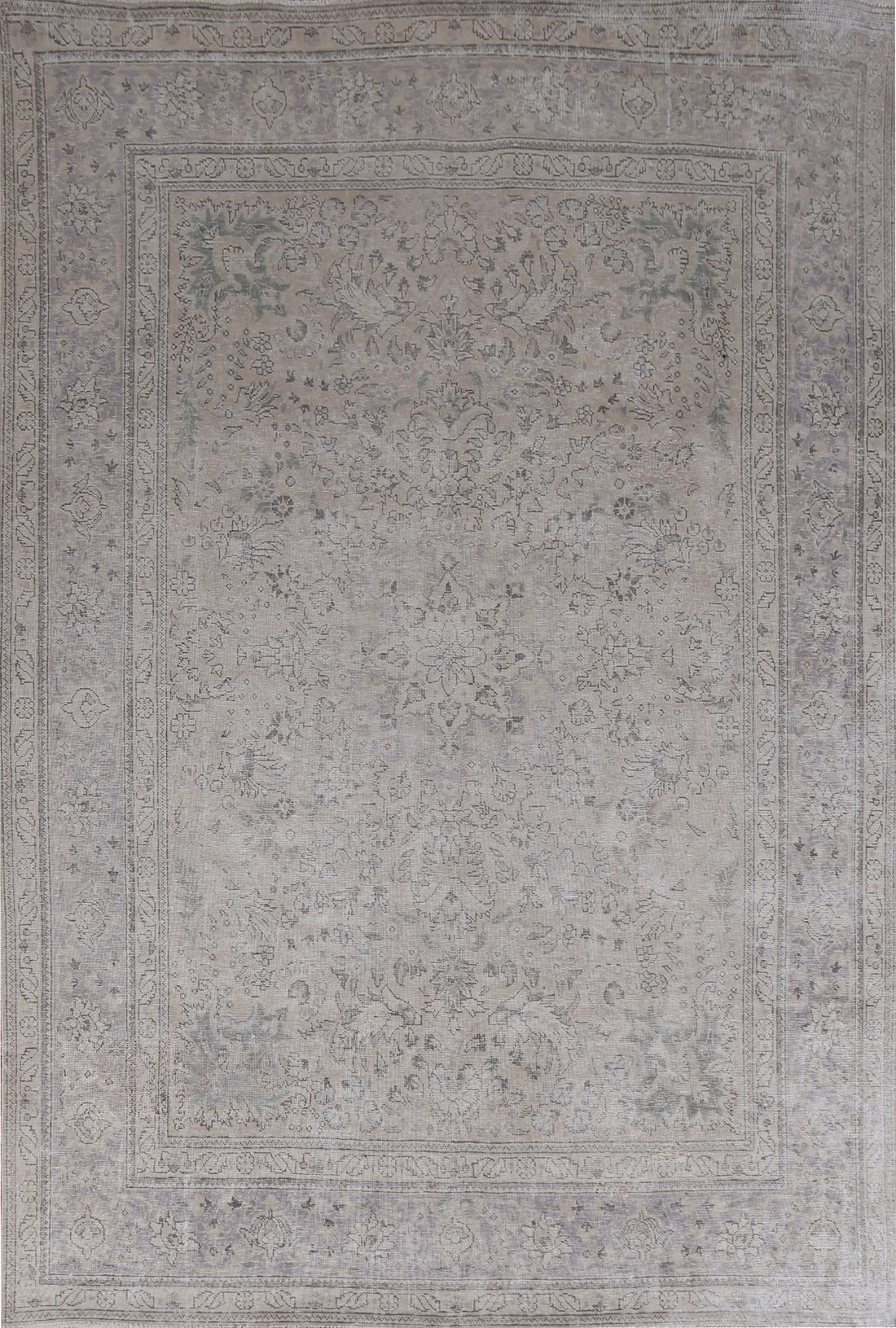 Distressed Floral Tabriz Persian Area Rug 7x10