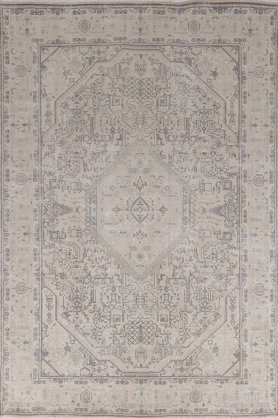 Distressed Geometric Tabriz Persian Area Rug 7x10