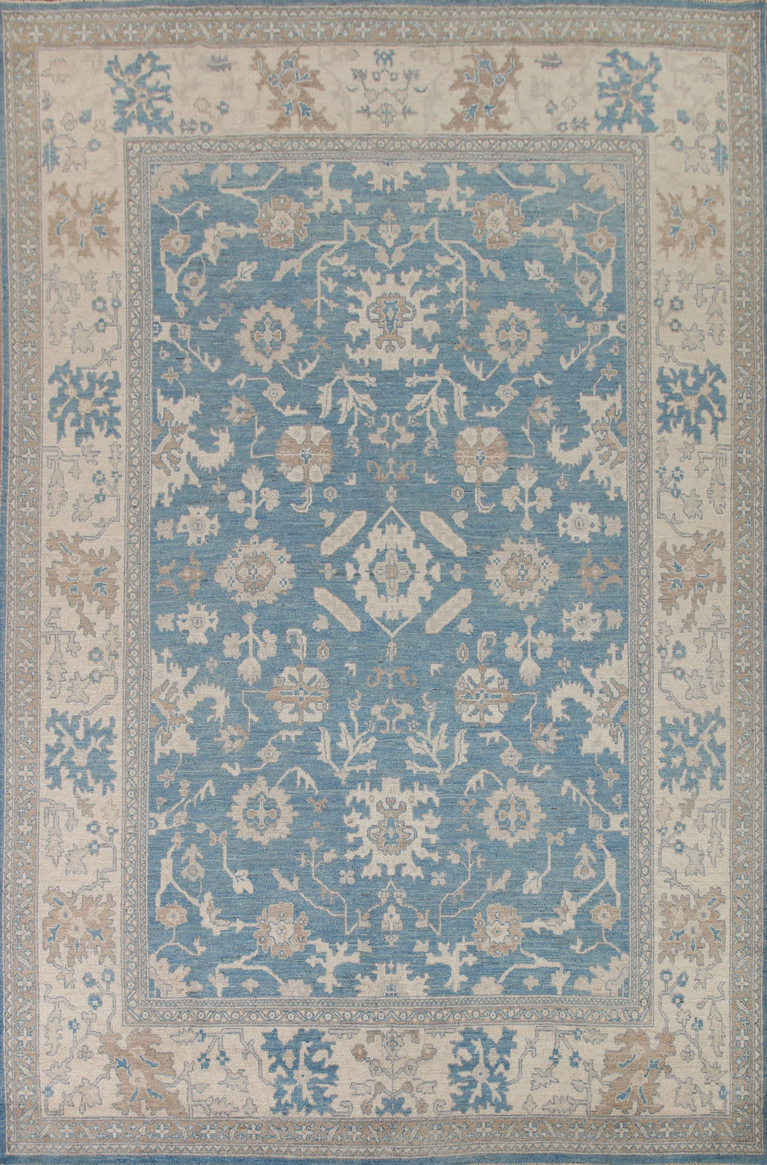 Vegetable Dye Oushak Blue Floral Area Rug 9x12