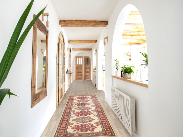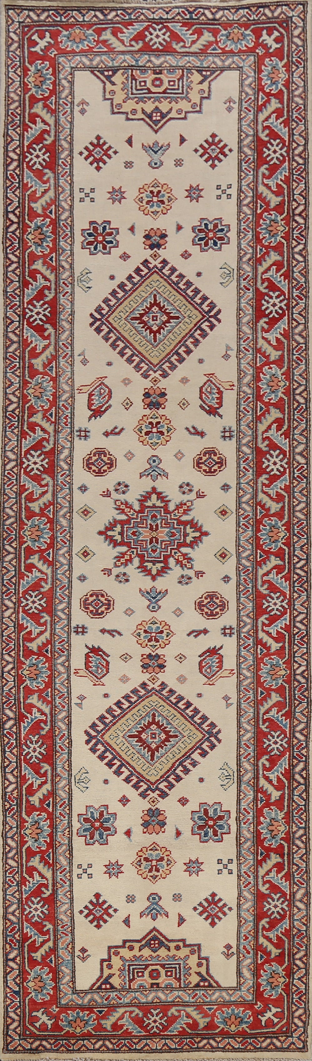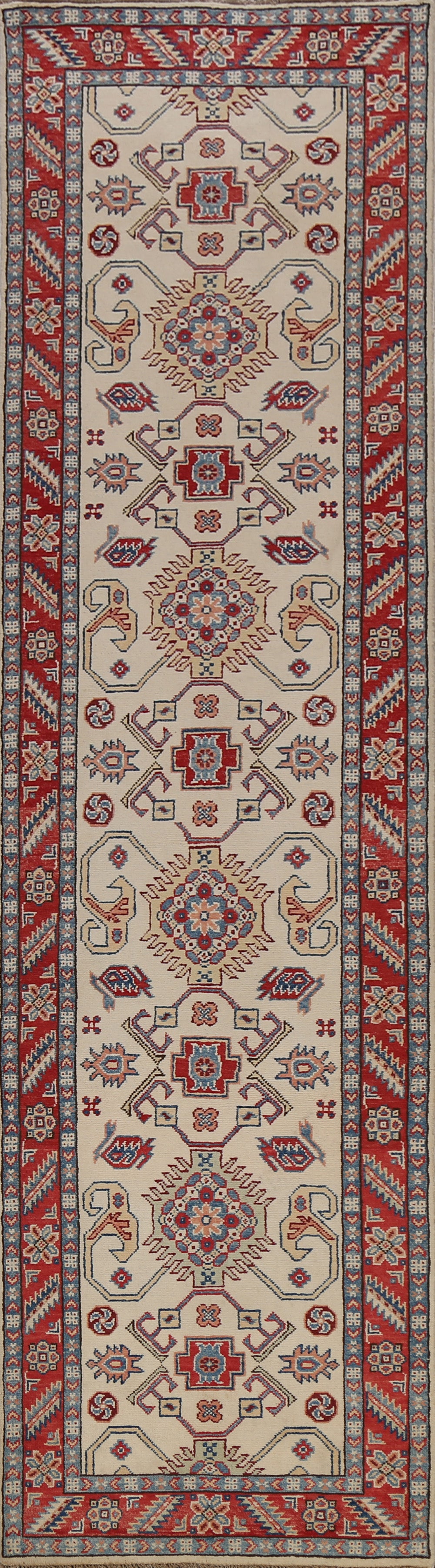 Geometric Red Kazak Oriental Runner Rug 3x8