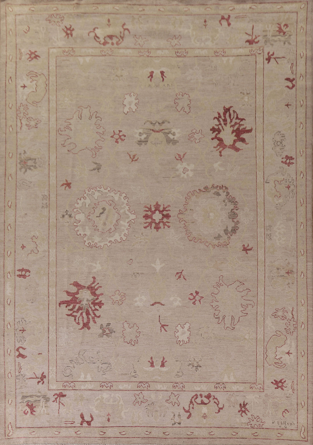Floral Gray Oushak Vegetable Dye Area Rug 8x10