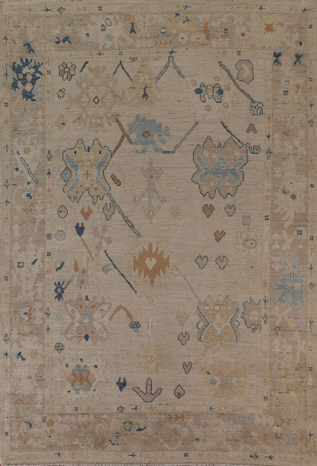 Vegetable Dye Oushak Turkish Area Rug 4x5