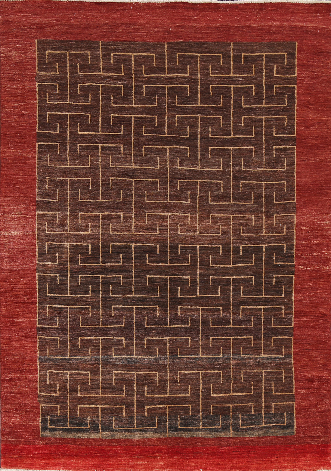Brown Geometric Gabbeh Kashkoli Oriental Wool Rug 6x8