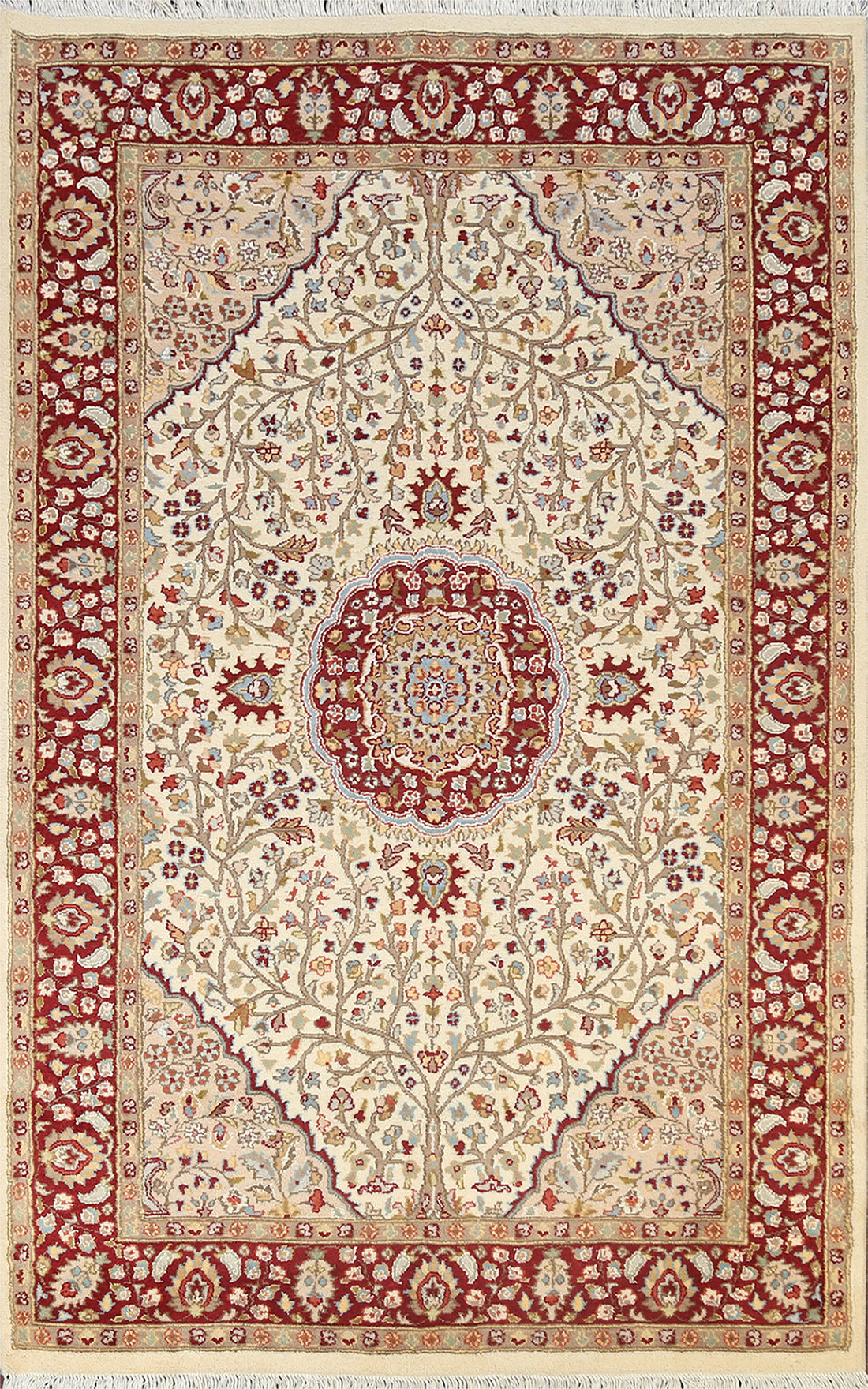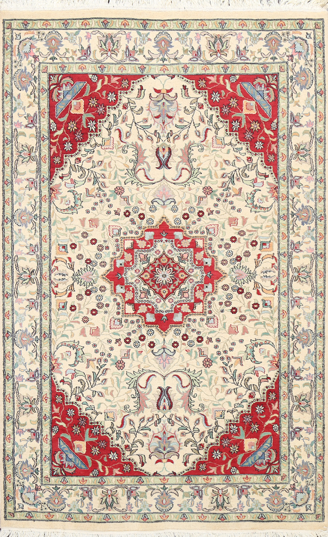 100% Vegetable Dye Tabriz Silk/ Wool Area Rug 4x6