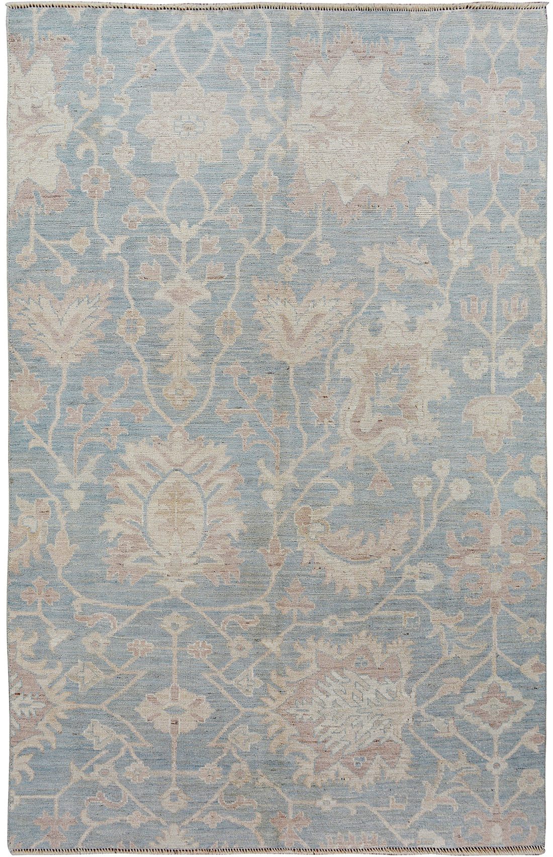 All-Over Blue Oushak Turkish Vegetable Dye Area Rug 5x9