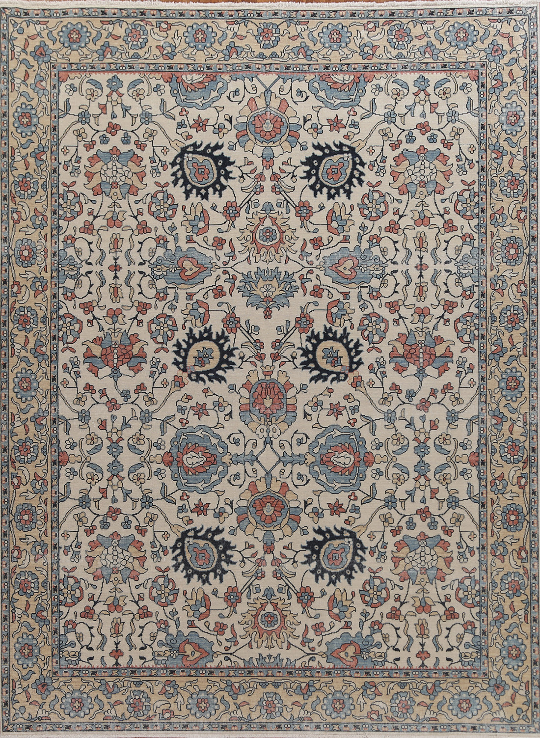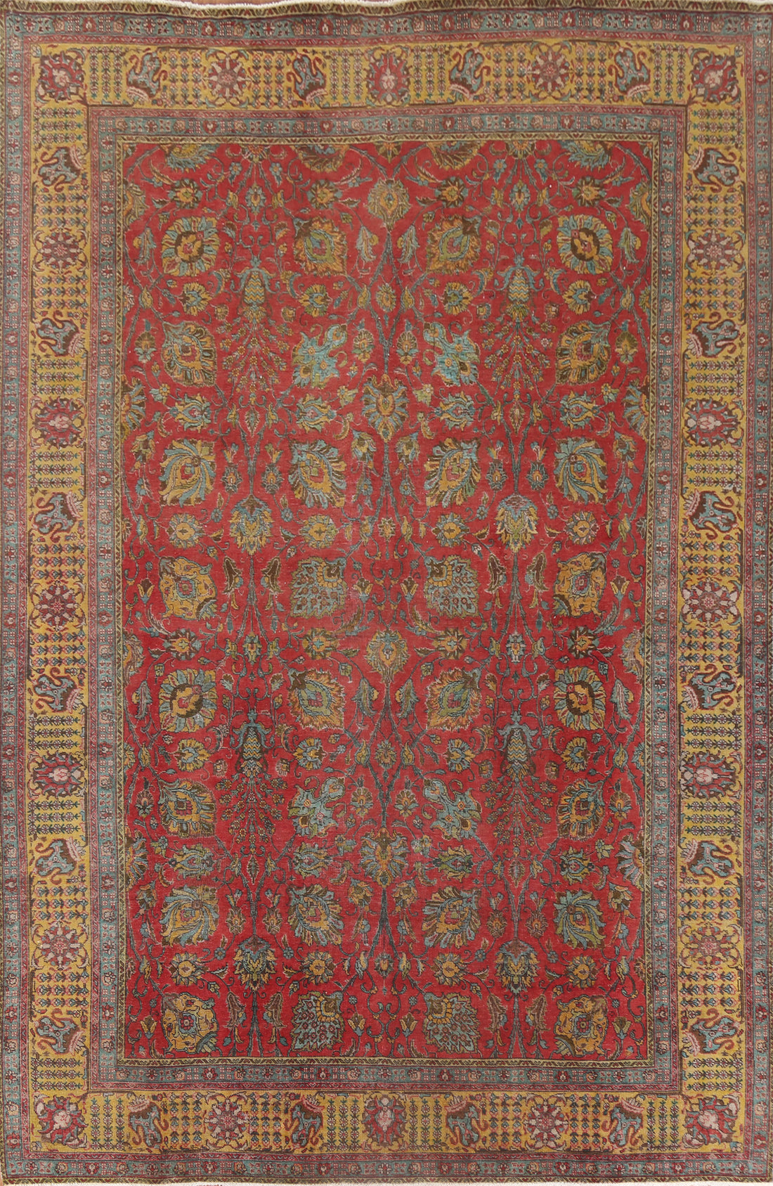 All-Over Floral Wool Tabriz Persian Area Rug 10x13