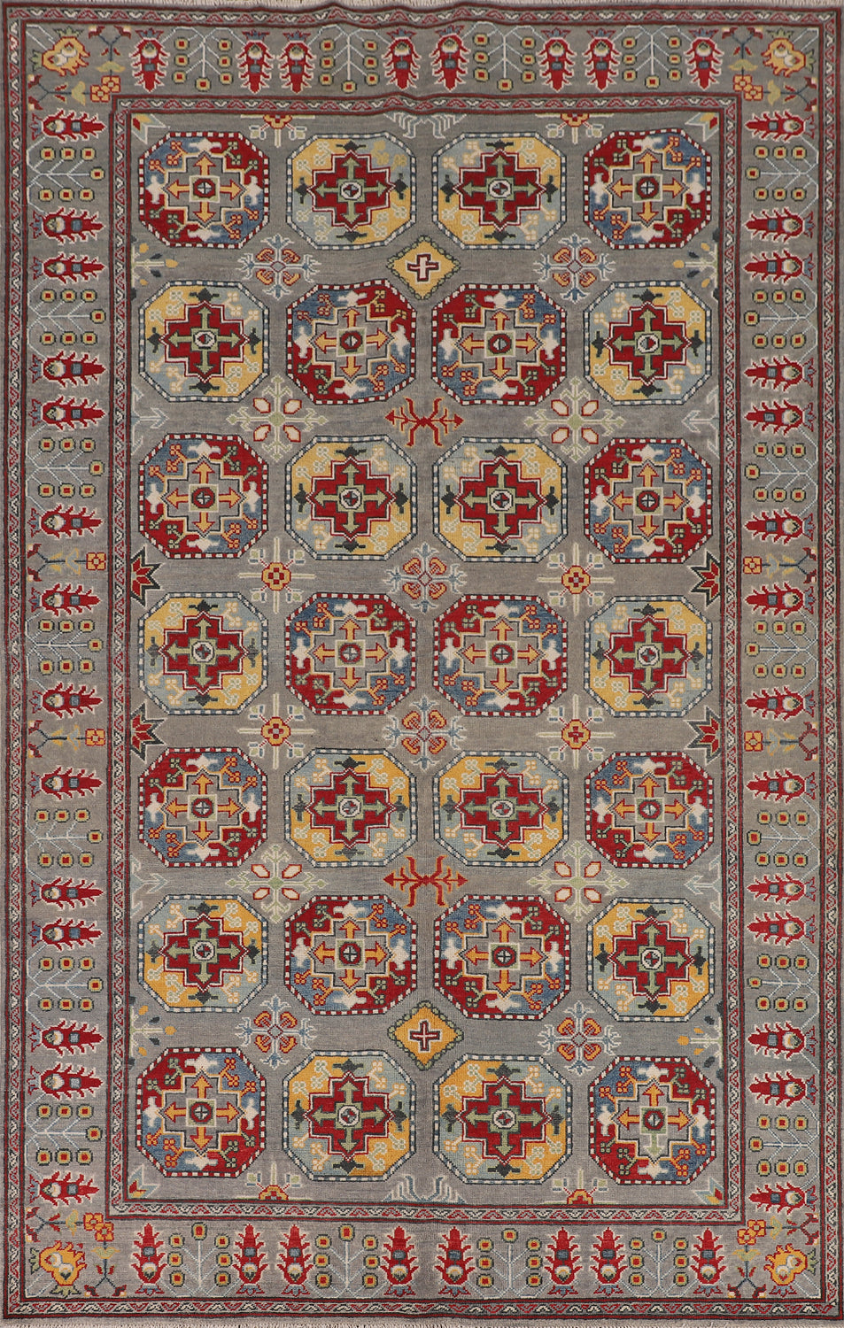All-Over Gray Wool Kazak Oriental Area Rug 6x10
