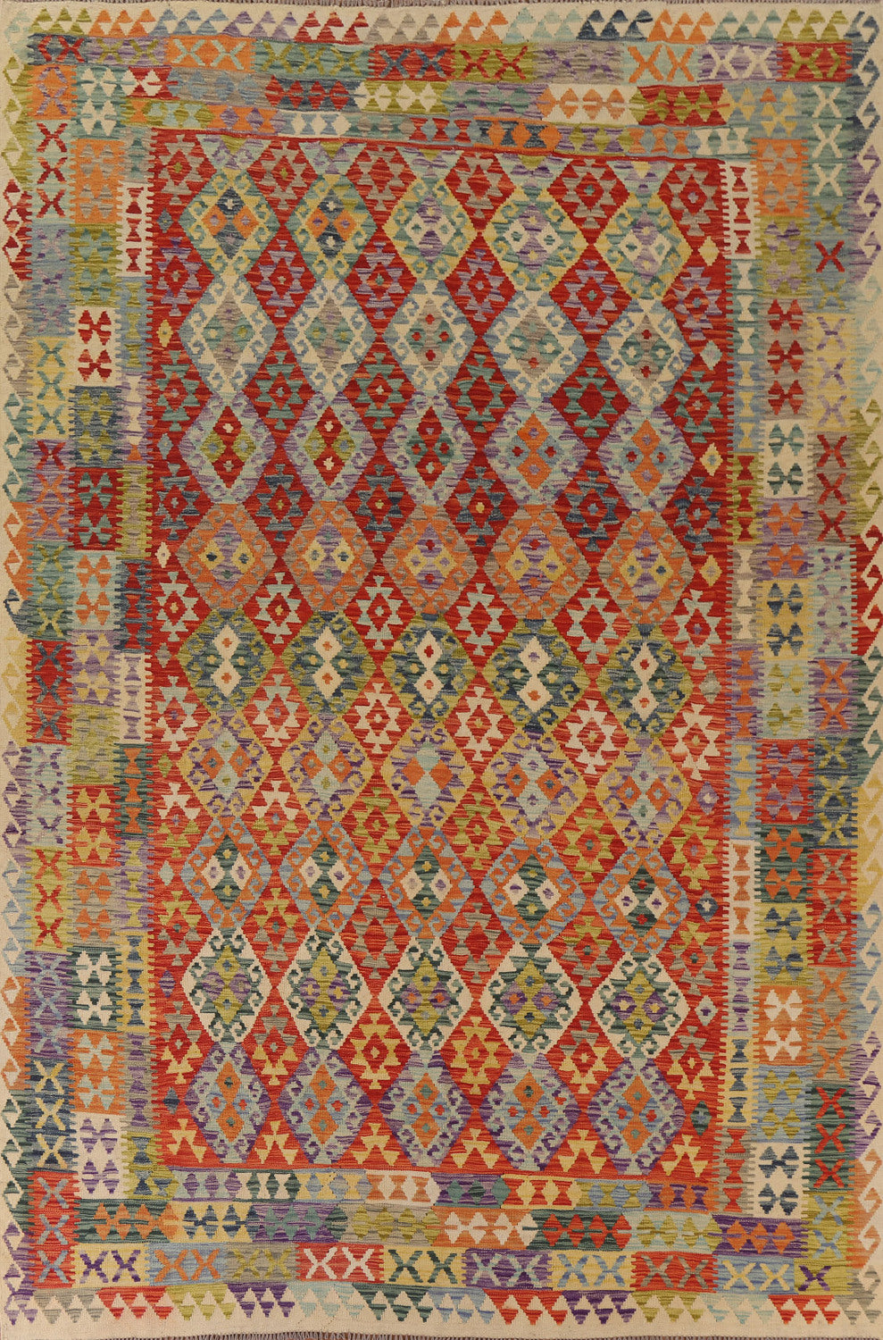 All-Over Kilim Reversible Wool Area Rug 9x11