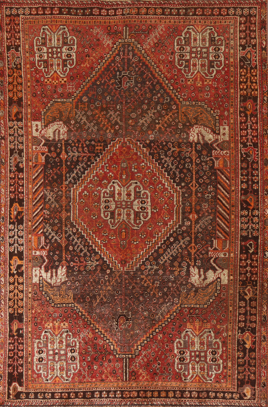 Pre-1900 Antique Vegetable Dye Qashqai Persian Rug 5x8