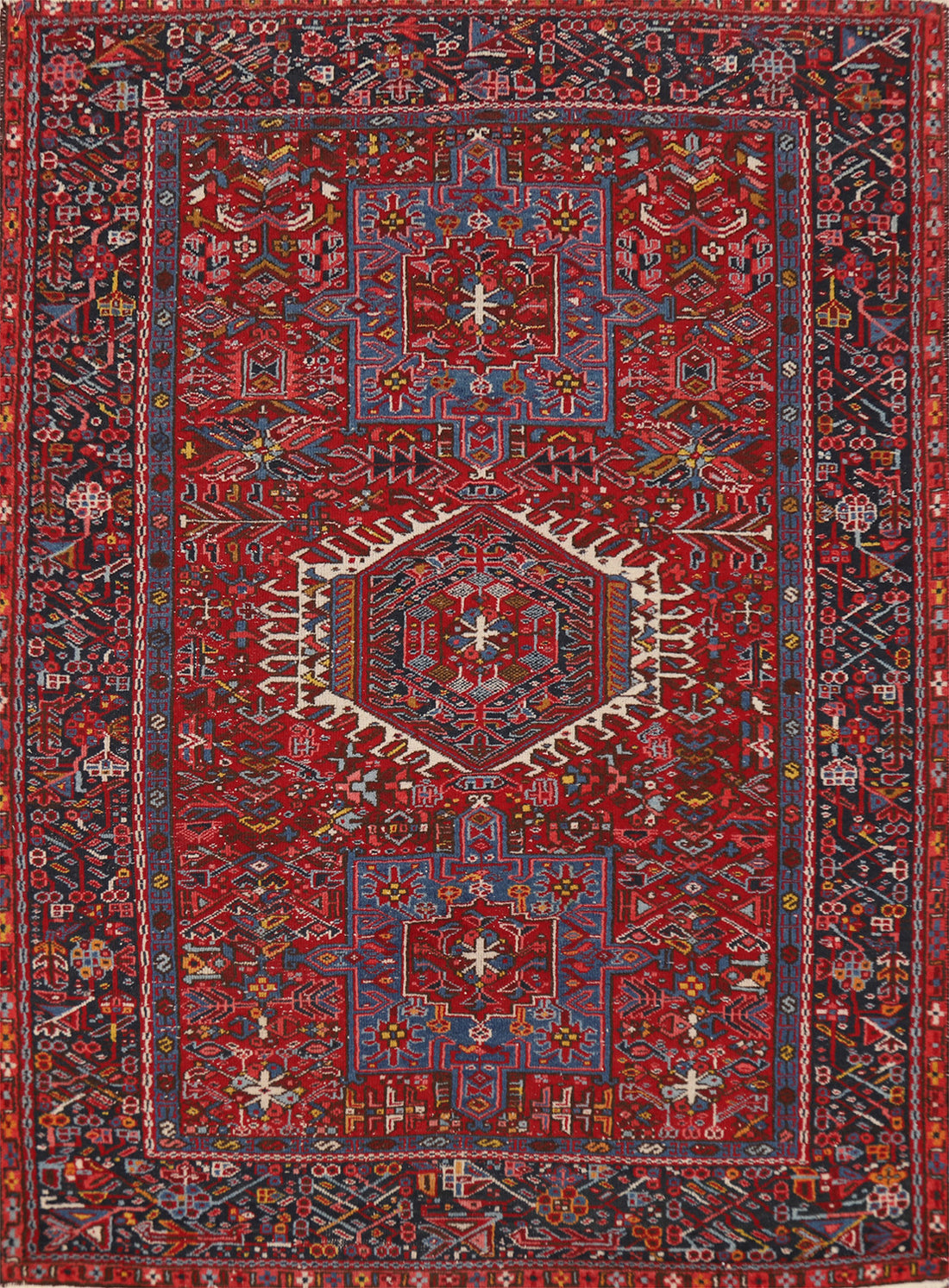 Antique Geometric Heriz Persian Area Rug 7x9