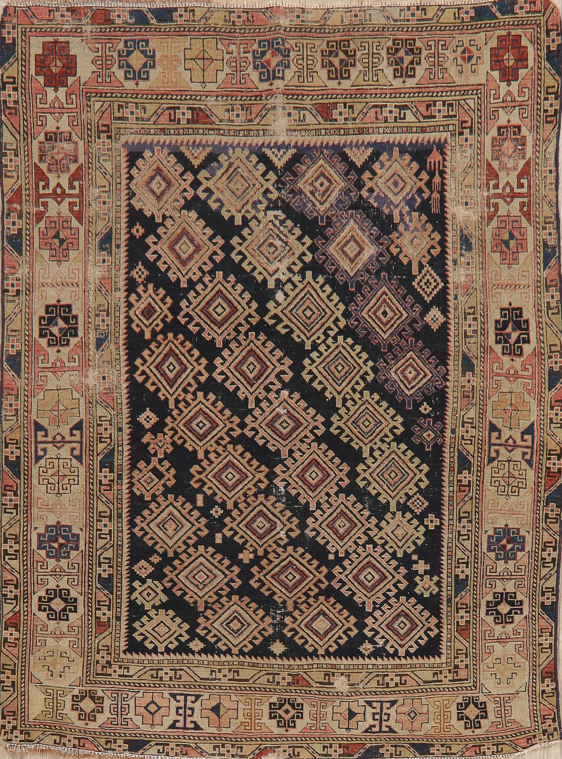Pre-1900 Antique Kazak Vegetable Dye Rug 3x4