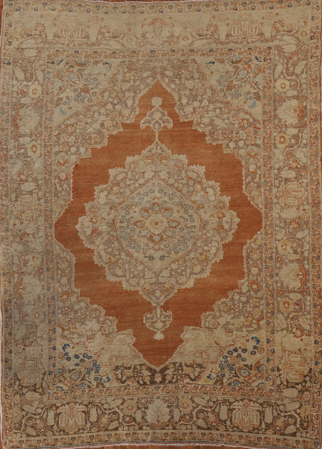 Pre-1900 Antique Tabriz Haj Jalili Vegetable Dye Persian Rug 4x5