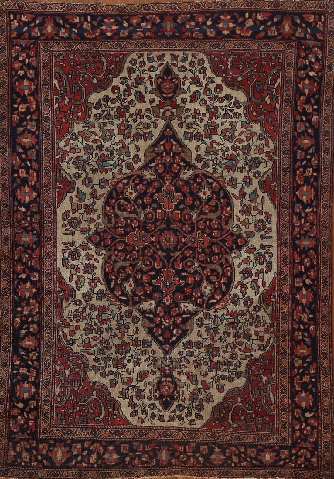 Pre-1900 Antique Vegetable Dye Sarouk Farahan Persian Rug 4x5