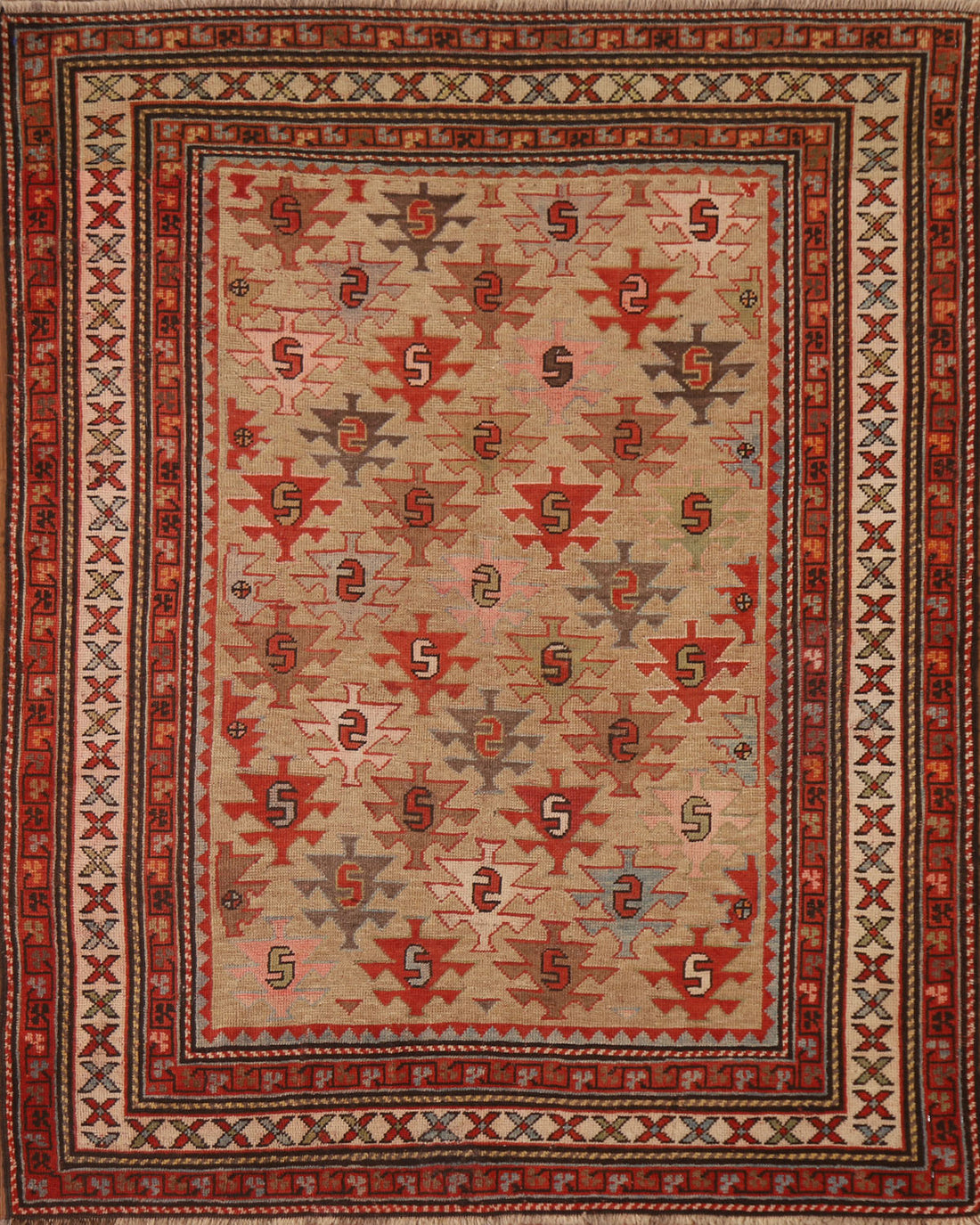 Pre-1900 Antique Vegetable Dye Kazak Oriental Area Rug 4x5