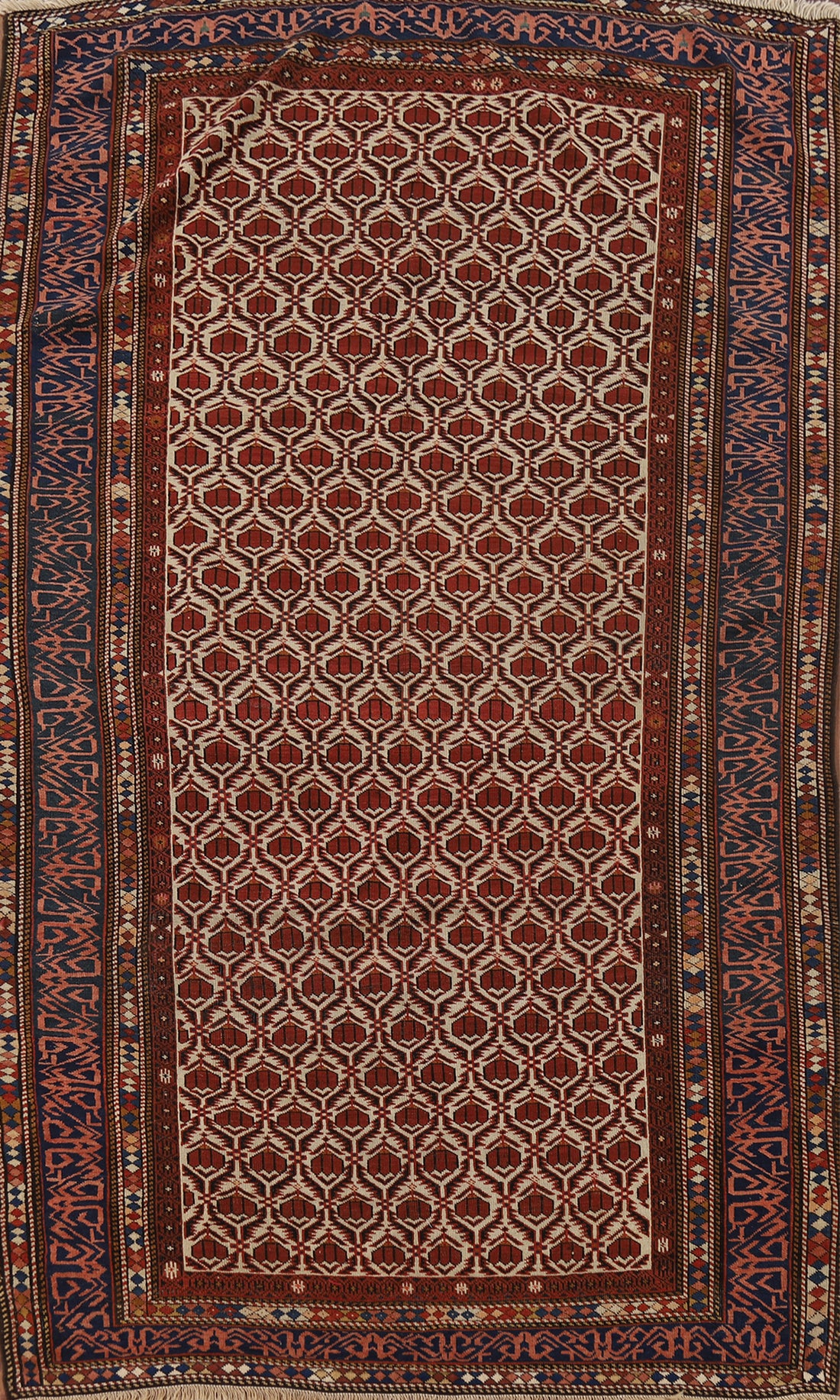Antique Geometric Kazak Vegetable Dye Russian Area Rug 5x12