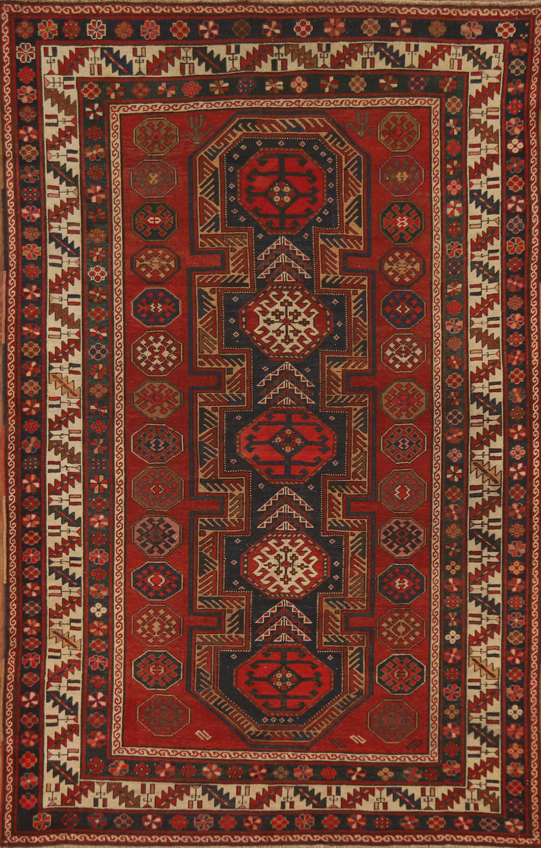 Pre-1900 Antique Caucasian Vegetable Dye Area Rug 4x6