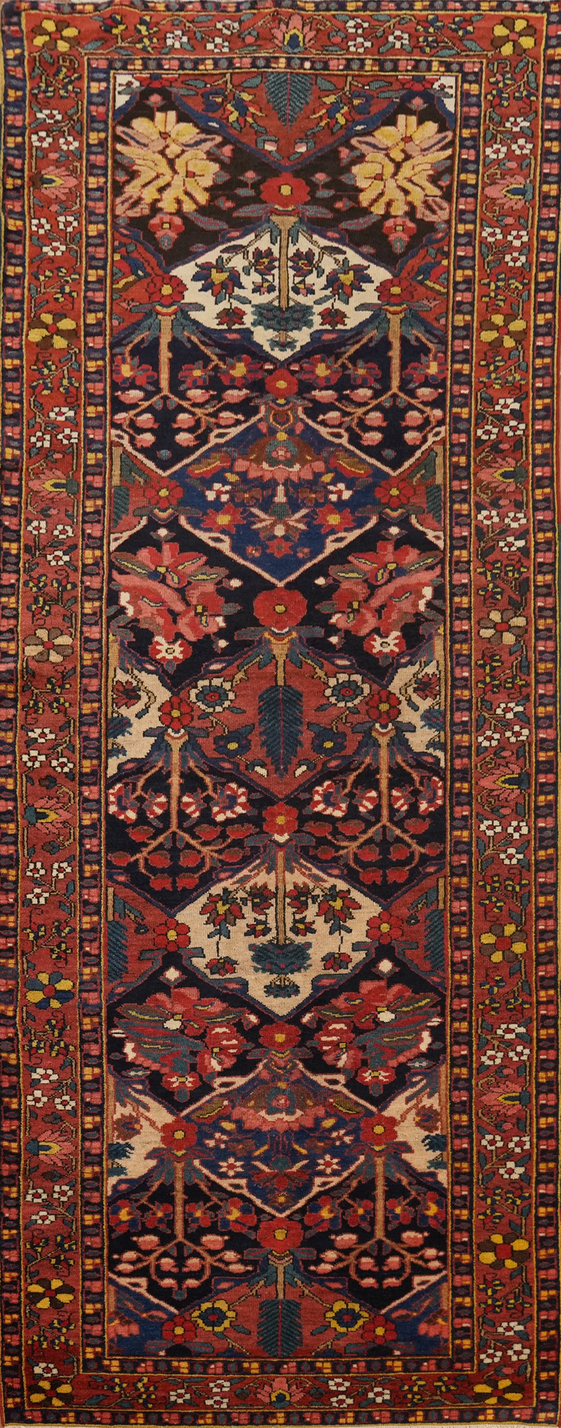 Pre-1900 Vegetable Dye Bakhtiari Persian Runner Rug 3x10