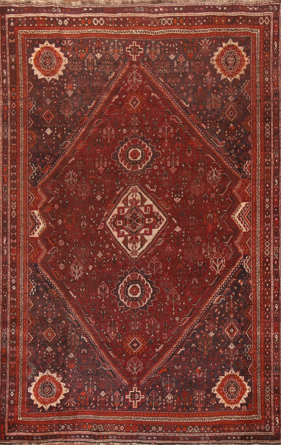 Vegetable Dye Antique Qashqai Persian Area Rug 7x11