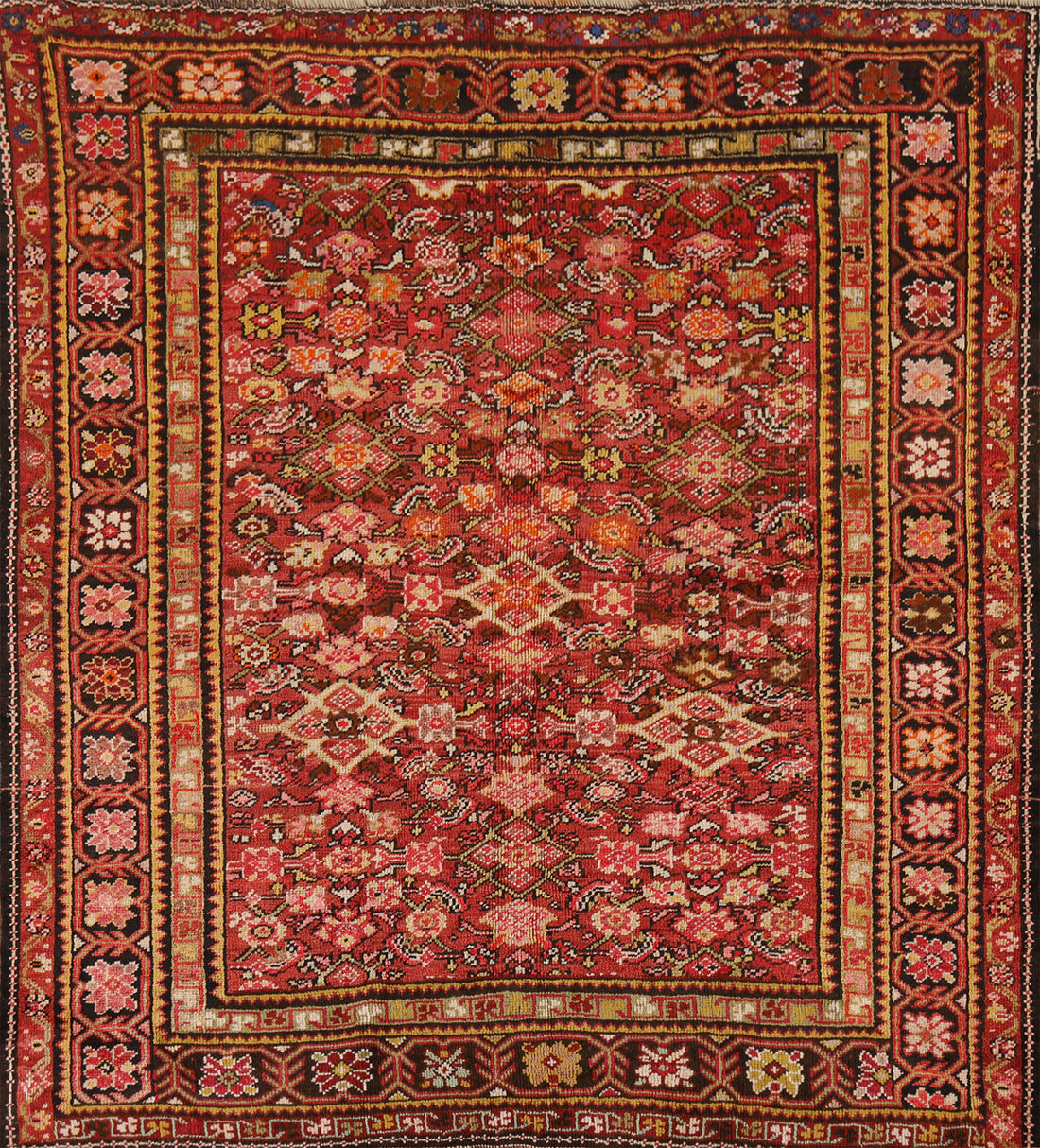 Antique Wool Kazak Vegetable Dye Area Rug 5x8