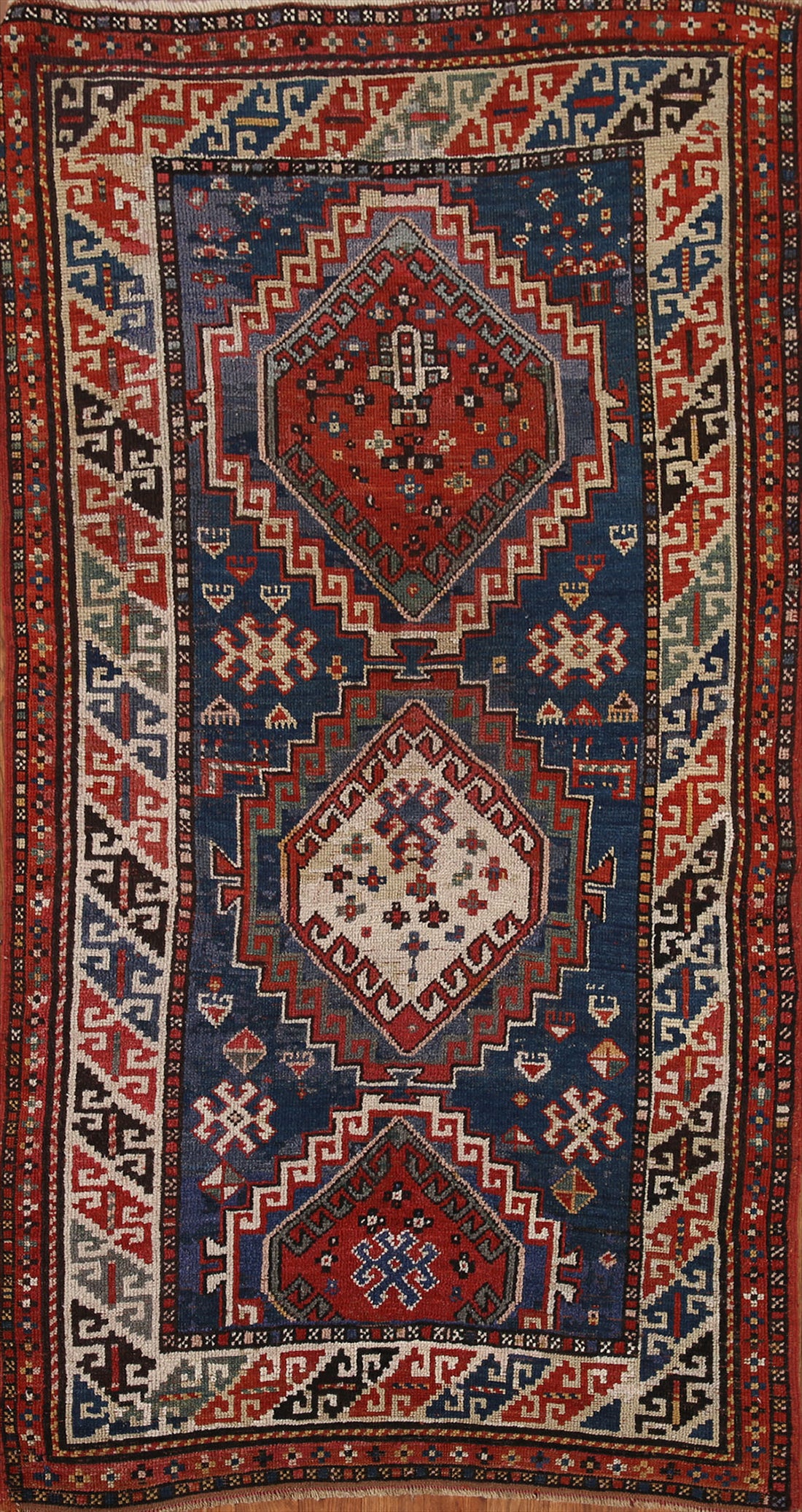 Pre-1900 Antique Wool Kazak Vegetable Dye Rug 4x5
