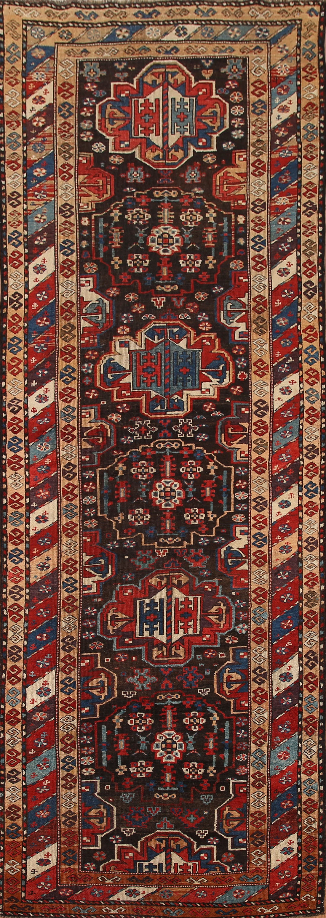 Pre-1900 Antique Vegetable Dye Kazak Oriental Runner Rug 4x10