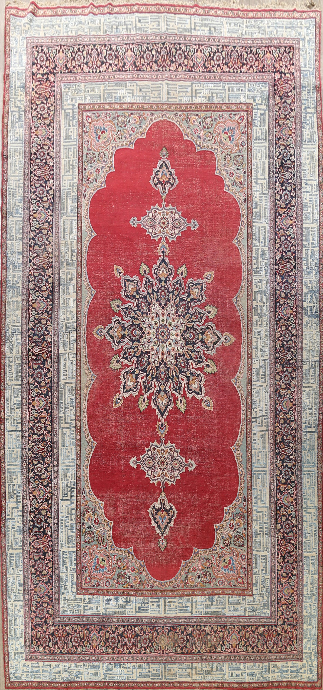 Antique Vegetable Dye Yazd Persian Large Rug 10x14