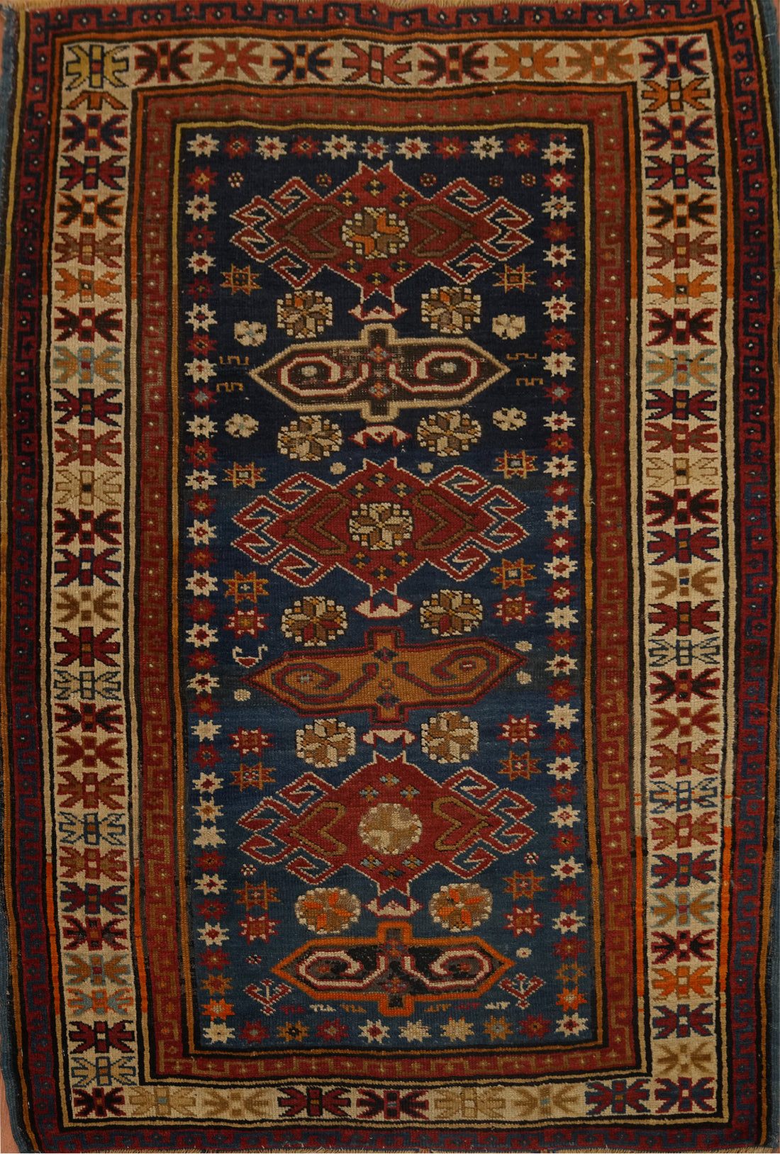 Pre-1900 Antique Kazak Vegetable Dye Rug 4x5
