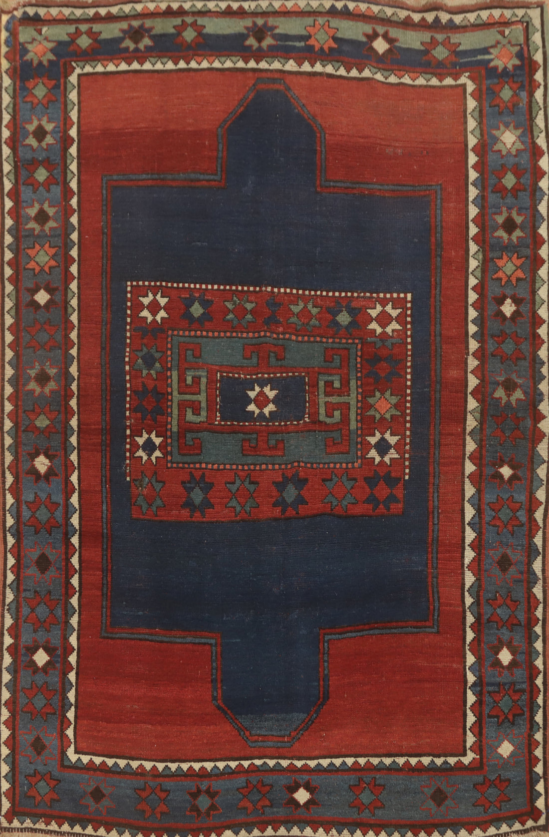 Pre-1900 Antique Kazak Vegetable Dye Rug 4x5