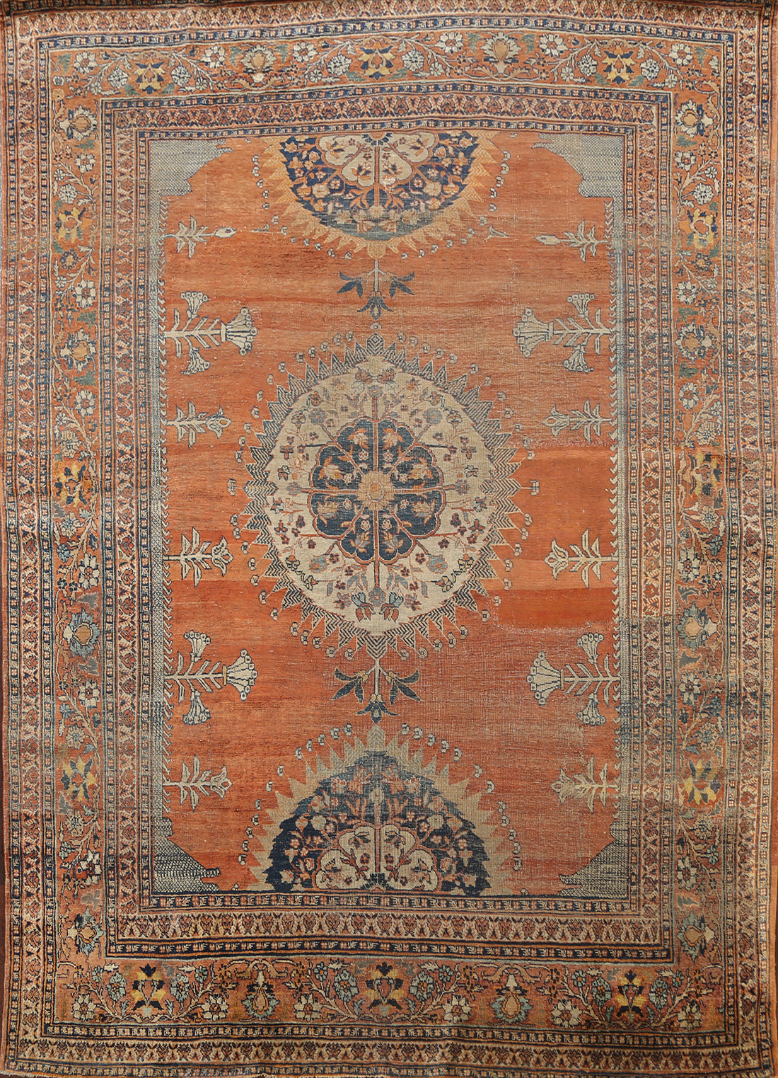 Pre-1900 Antique Tabriz Haj Jalili Vegetable Dye Persian Rug 11x15