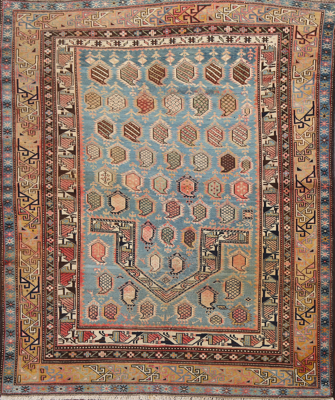 Pre-1900 Antique Vegetable Dye Shirvan Oriental Rug 5x6