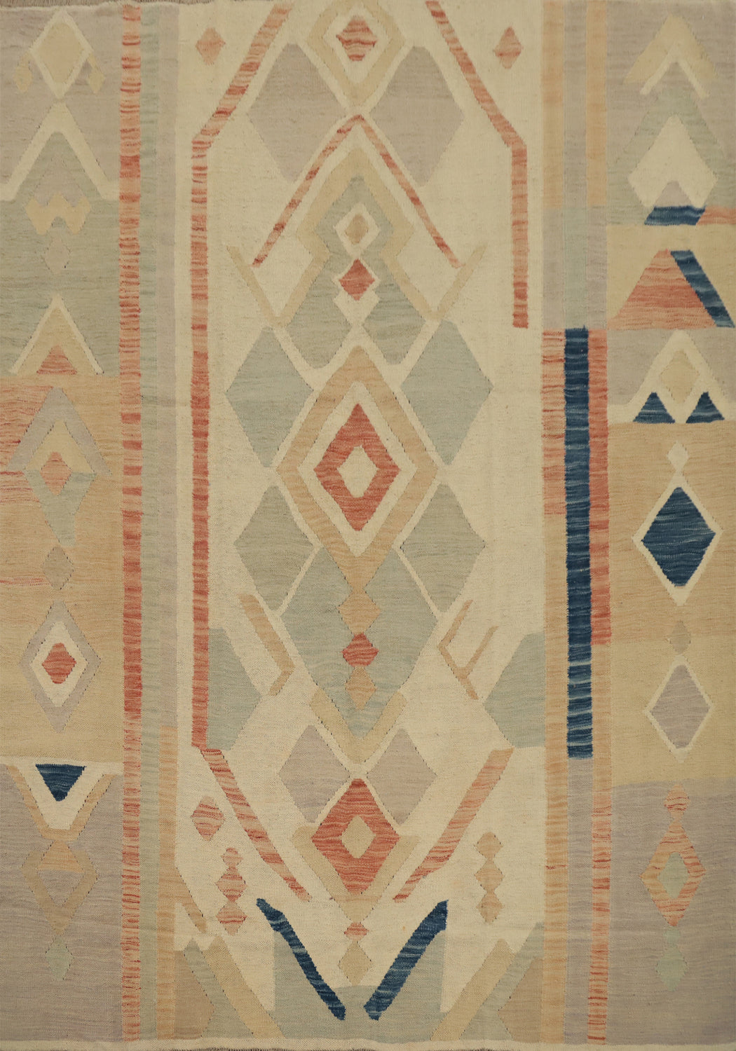 Modern Wool Kilim Vegetable Dye Area Rug 7x10