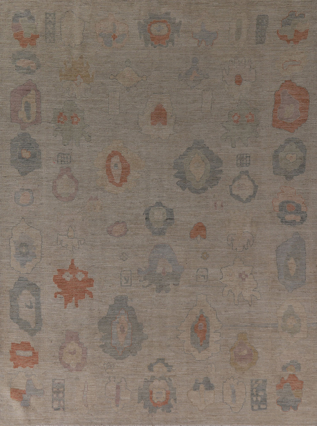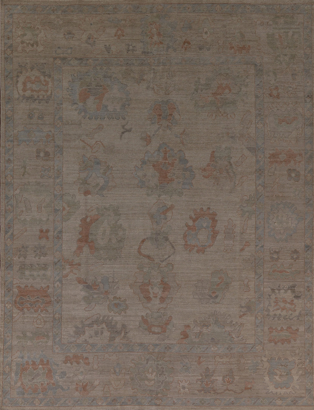Earth Tone Oushak Vegetable Dye Area Rug 9x12