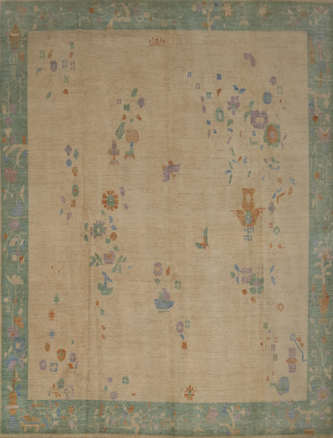Animals Pictorial Art Deco Vegetable Dye Area Rug 8x11