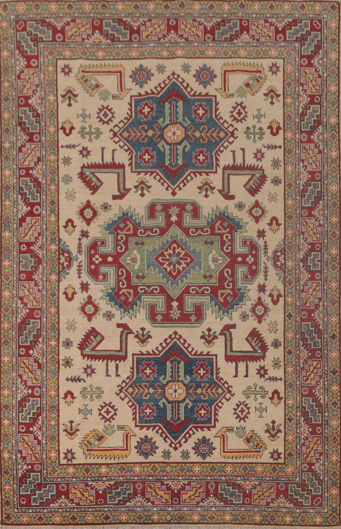 A Beautiful Genuine Pakistan Kazak rug is Hand Knotted by skillful weavers in Pakistan with...