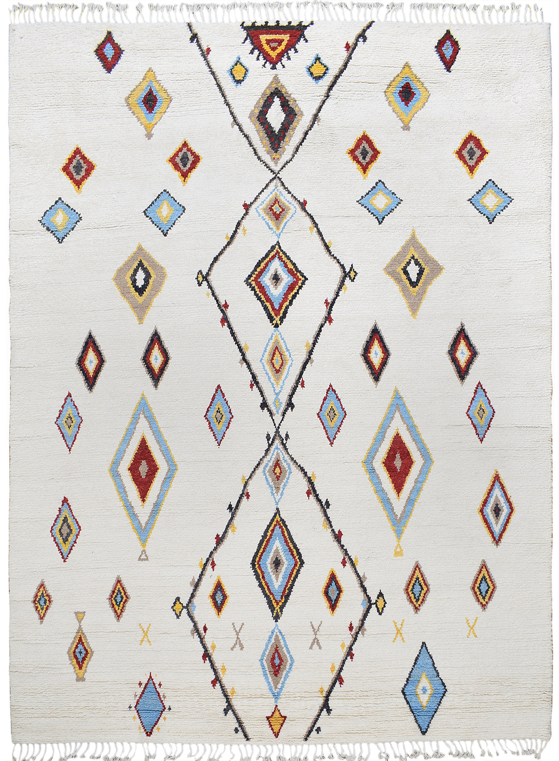 Ivory Tribal Diamond Moroccan Area Rug 9x13