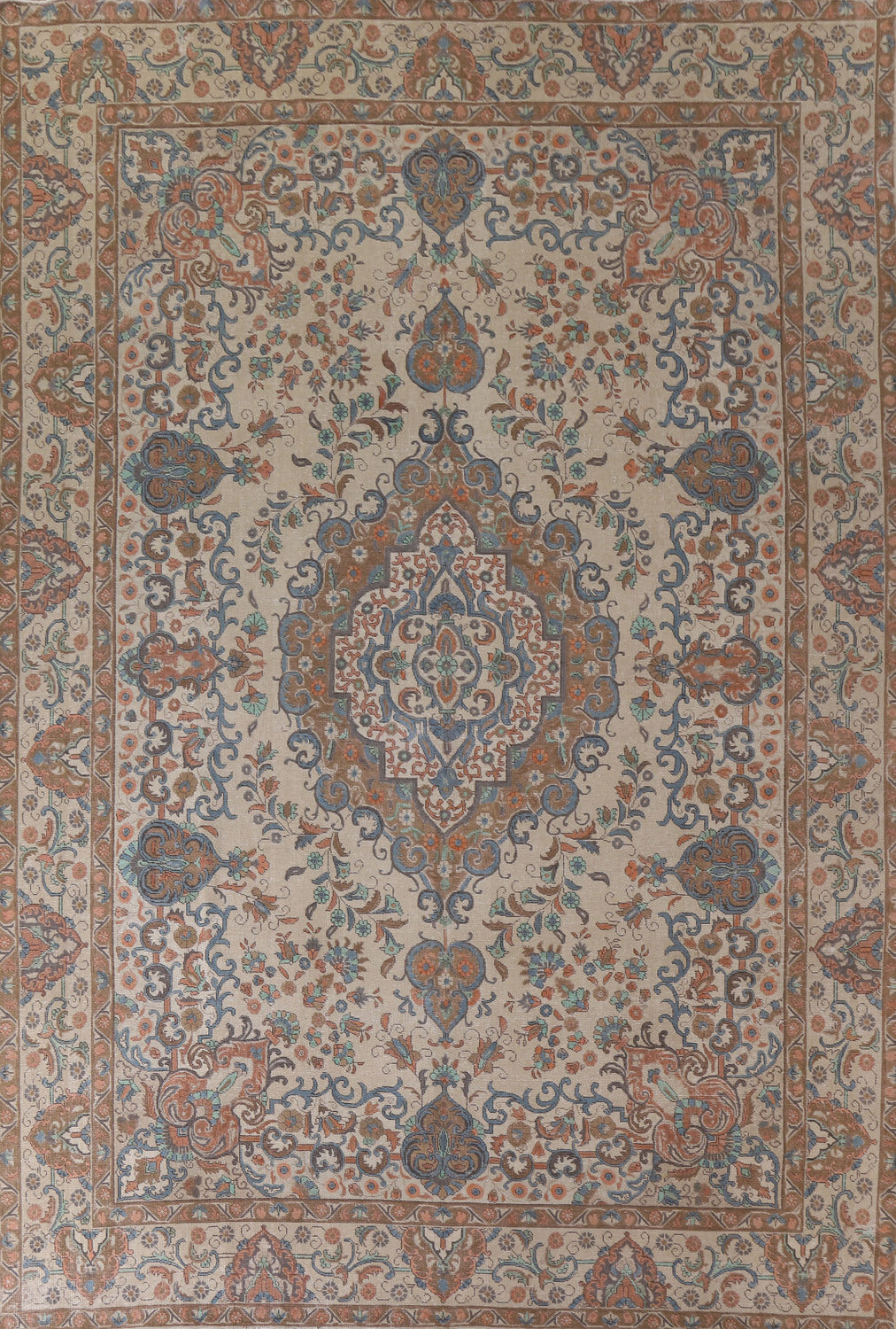 Distressed Floral Tabriz Persian Area Rug 10x13